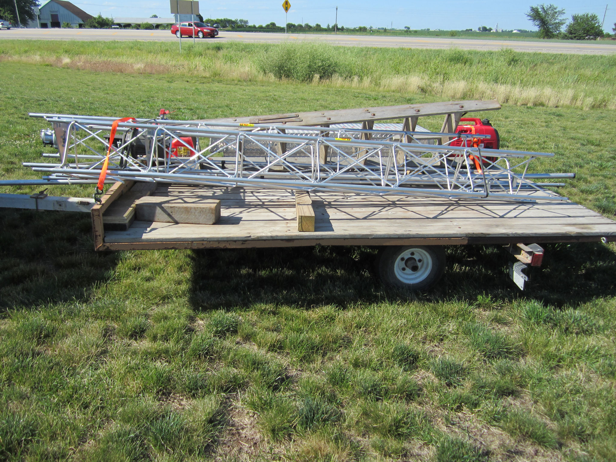 The smaller tower trailer ready to be assembled.